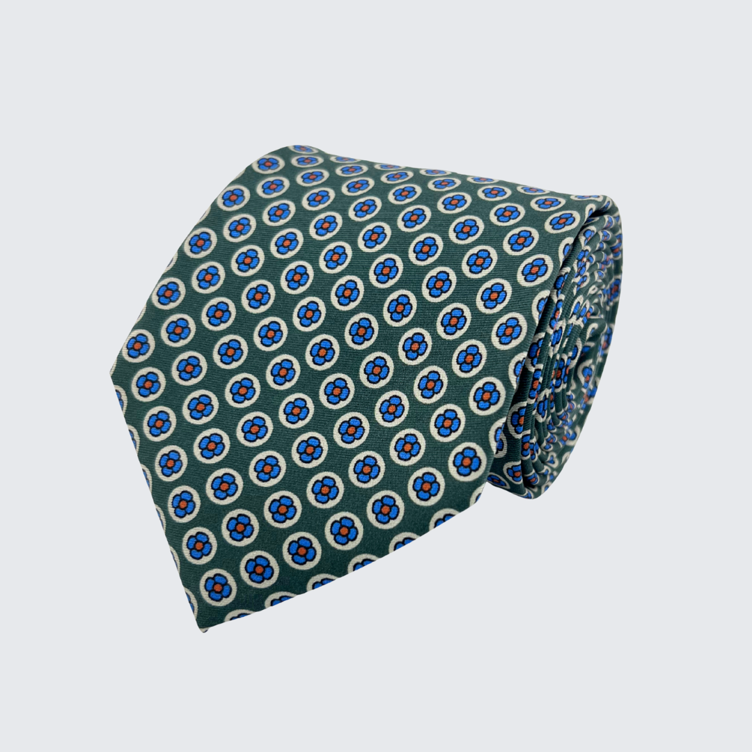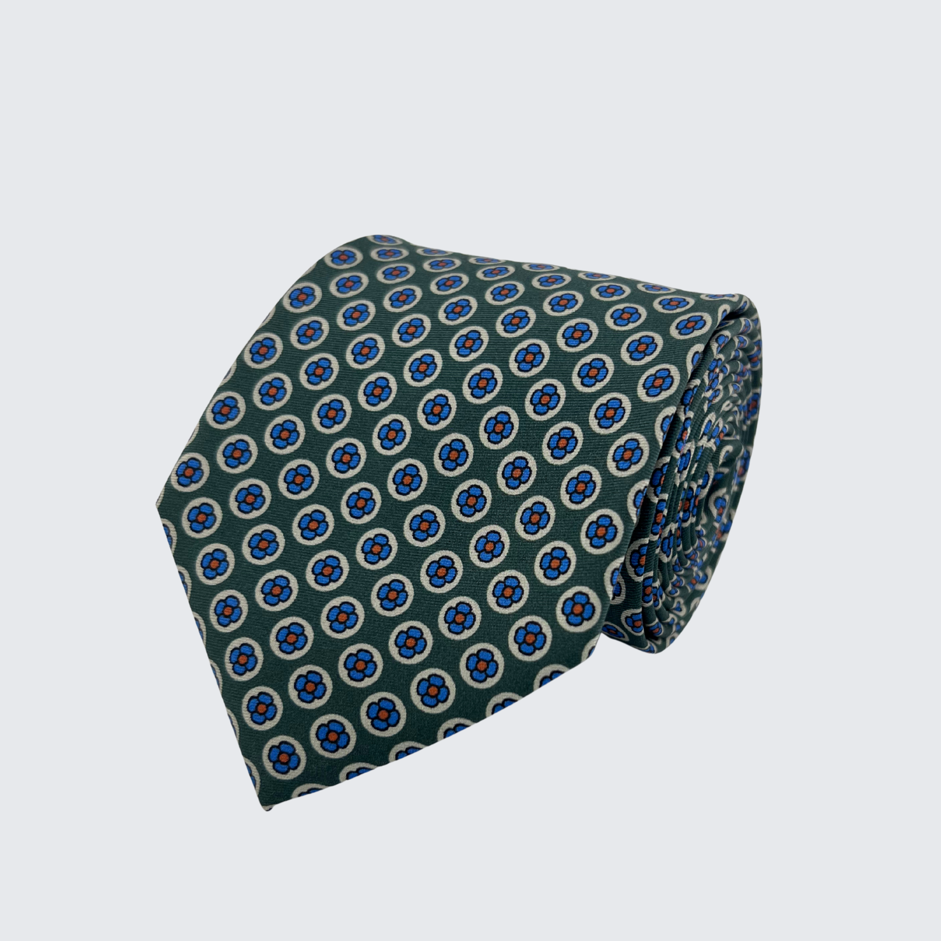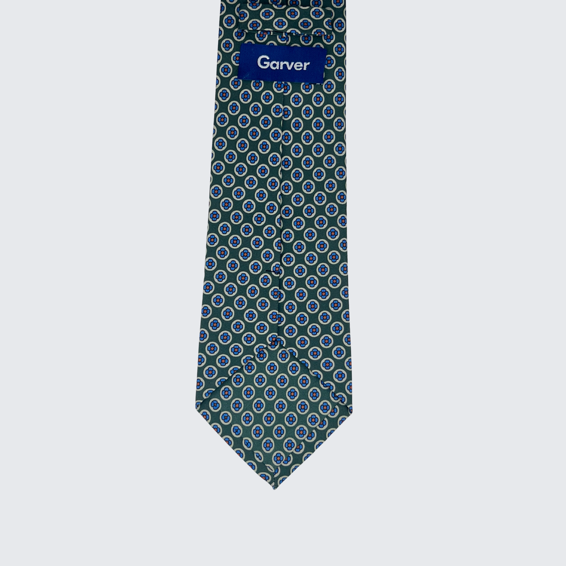Corbata diseñada en motivos geométricos, con construcción self tipped