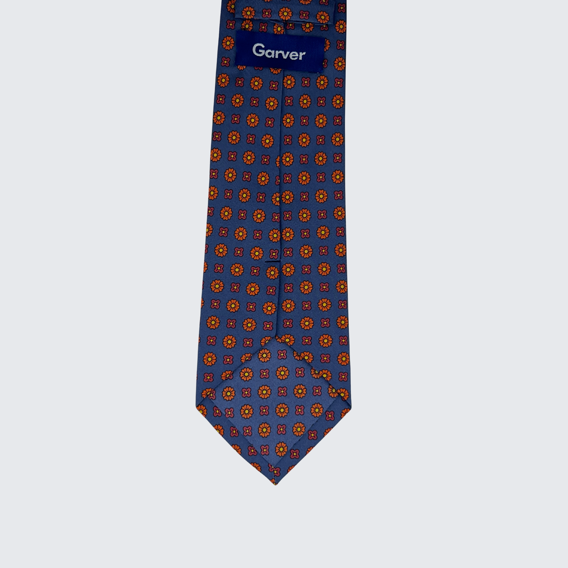 Corbata diseñada en motivos geométricos, con construcción self tipped