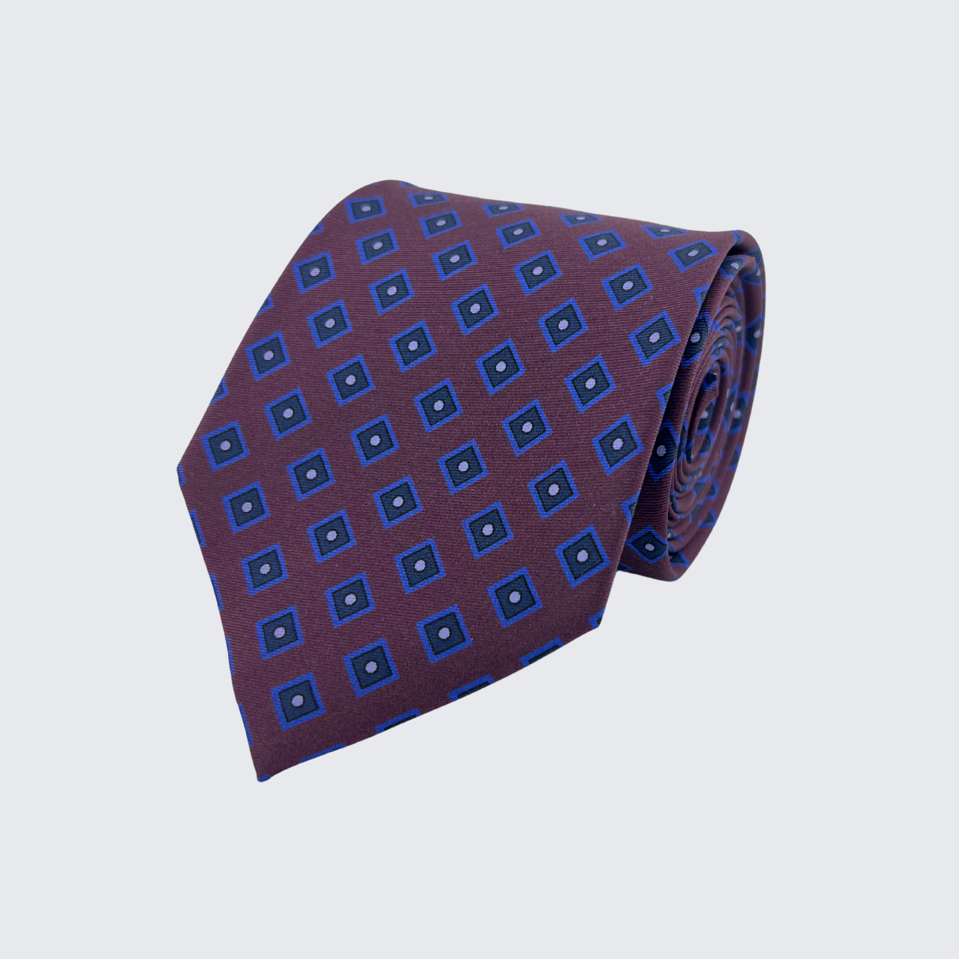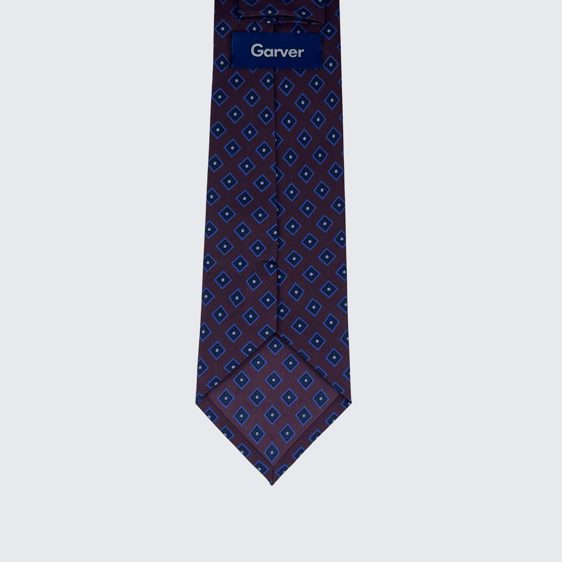 Corbata diseñada en motivos geométricos, con construcción self tipped